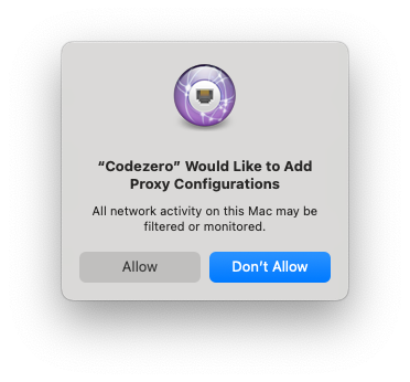 4. In the popup, click "Allow" in order to start the Codezero Network Extension: